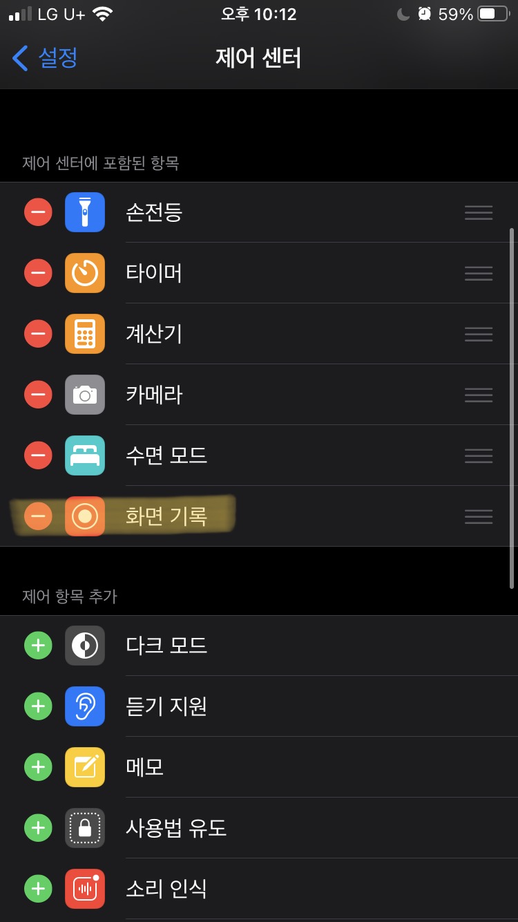 [제어센터 퀵메뉴에 화면녹화 버튼 넣기]