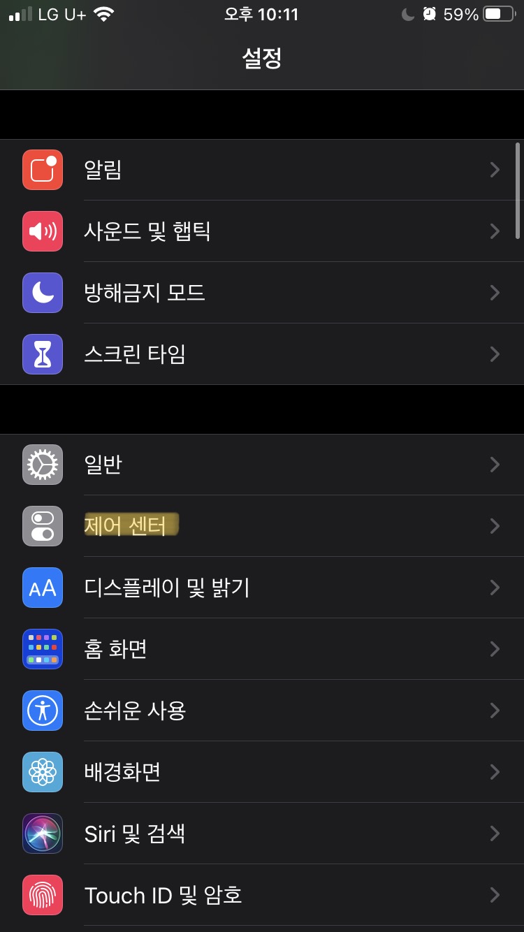 [설정]-[제어센터]에 들어가주세요.
