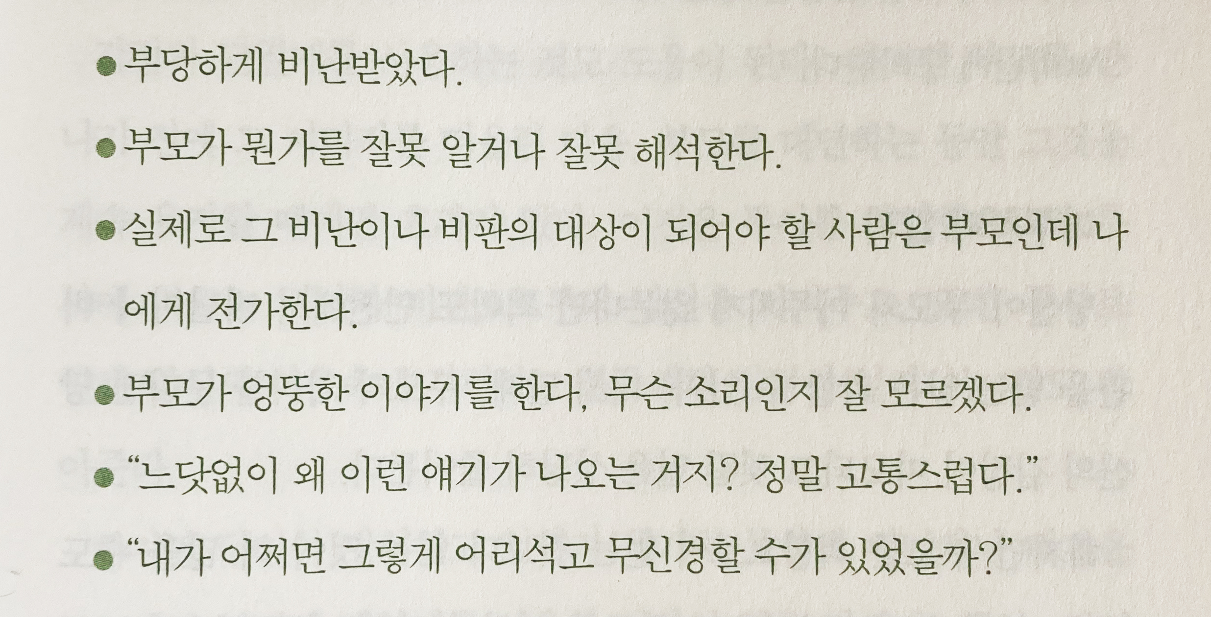 - 과거에 당신이 부모 기분을 상하게 했던 일들을 다 끄집어낸다